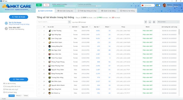 1. Phần mềm nuôi nick facebook MKT Care hỗ trợ quản lý tài khoản facebook số lượng lớn