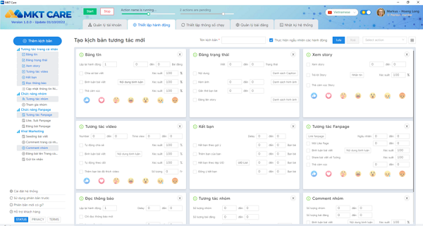 Được phát triển bởi công ty công nghệ hàng đầu Việt Nam, phần mềm nuôi nick facebook – MKT Care sở hữu vô số tính năng ưu việt. Thông tin chi tiết về tính năng phần mềm MKT, mời bạn đọc theo dõi ngay nội dung sau đây: